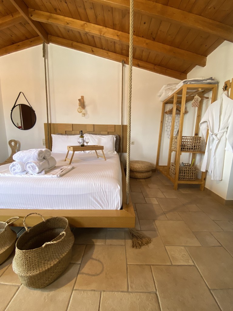 Όλα τα δωμάτια έχουν ατομικές βεράντες με ομπρέλα, καρέκλες και τραπέζι. Το δωμάτιο του πάνω ορόφου έχει μοναδική θέα, ενώ διαθέτει επιπλέον τζάκι και ξύλινη κούνια με τραπέζι.