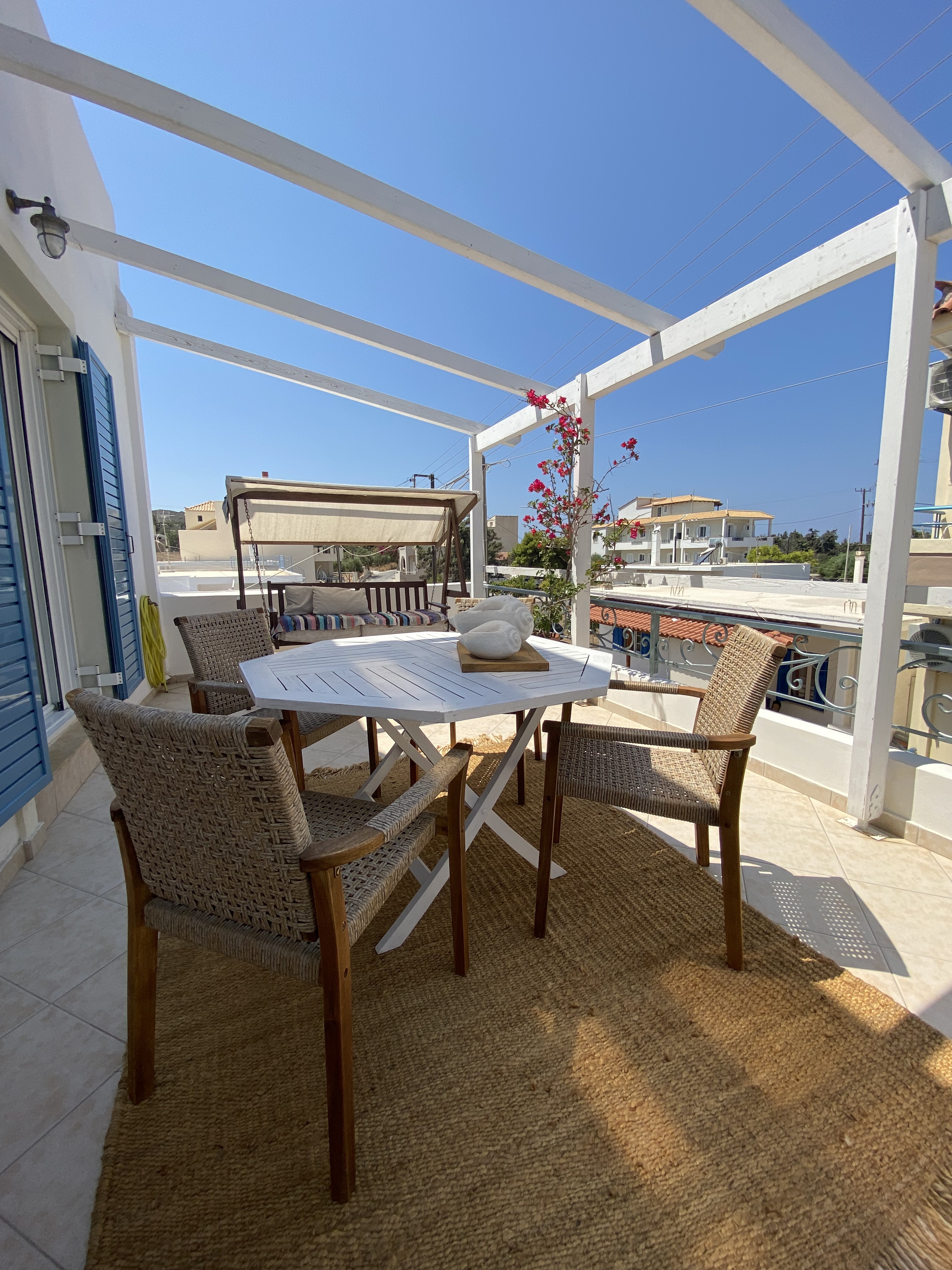Όλα τα δωμάτια έχουν ατομικές βεράντες με ομπρέλα, καρέκλες και τραπέζι. Το δωμάτιο του πάνω ορόφου έχει μοναδική θέα, ενώ διαθέτει επιπλέον τζάκι και ξύλινη κούνια με τραπέζι.